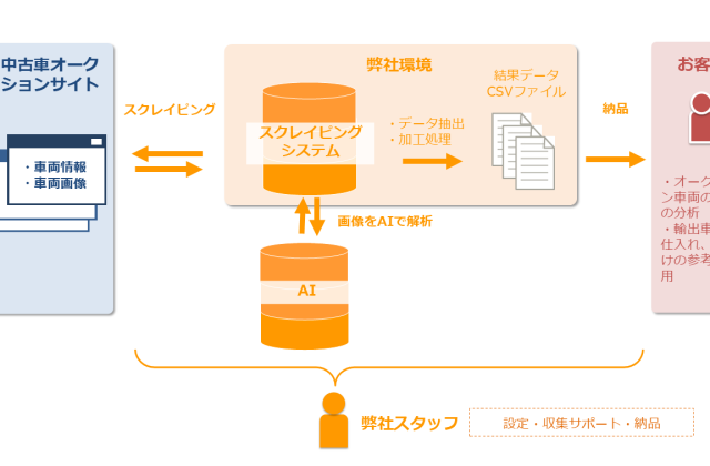 WEBクローリングでオークション車両の情報を収集。お客様指定サイトからオークション車両の情報を収集し、AIの画像解析で情報を抽出した事例をご紹介いたします。